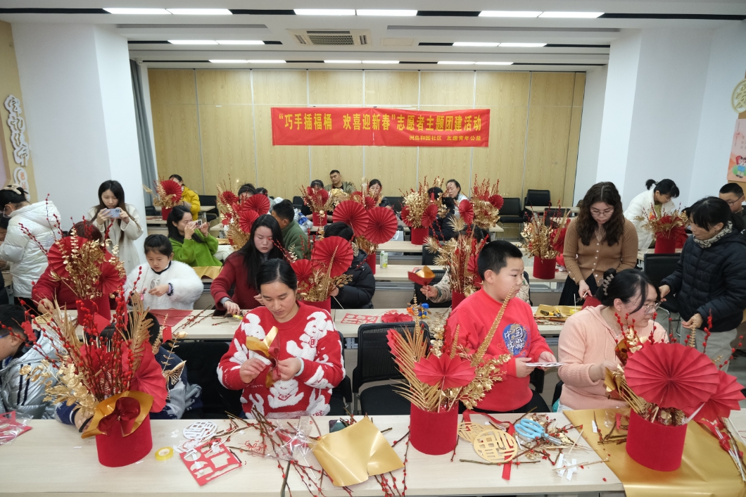 江心洲街道洲岛和园社区组织辖区亲子家庭开展“巧手插福桶,欢喜迎新春”活动