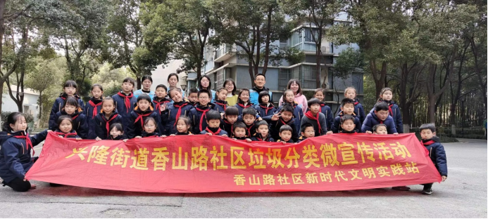 2024年3月8日下午,南京市人大代表、金陵中学实验小学校长何义田带领学校老师和学生来到香山路社区,开展了一场别开生面的垃圾分类我先行志愿活动。