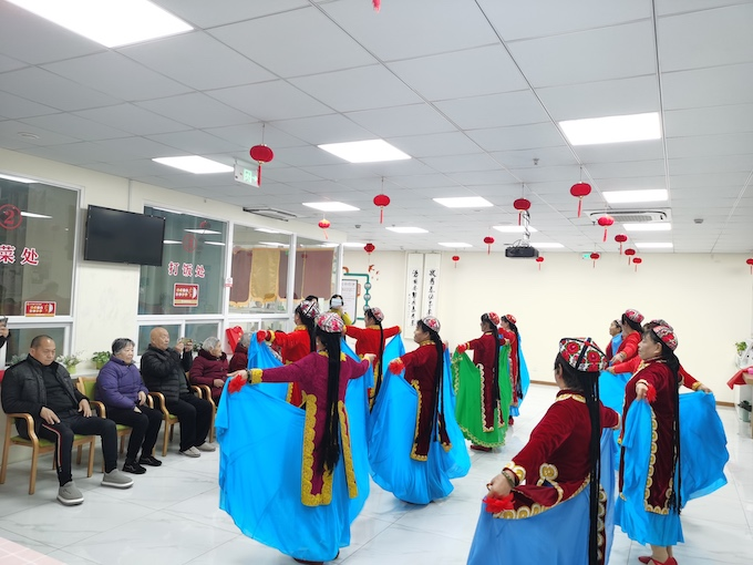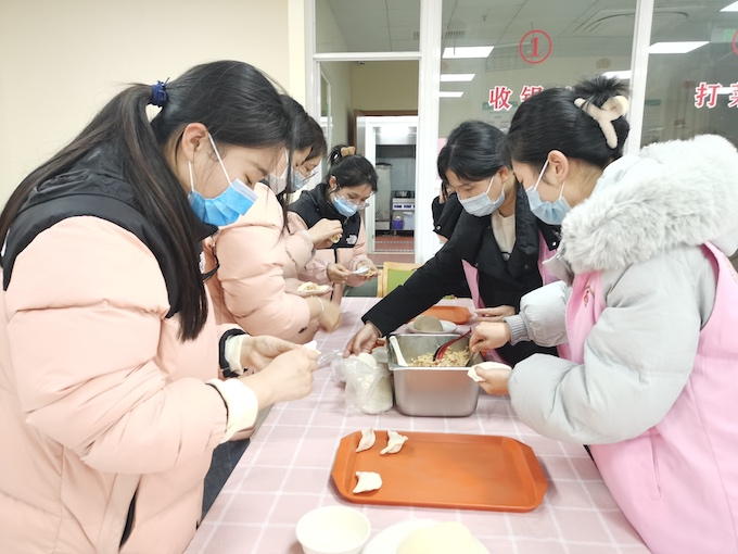 辖区幼儿园老师及舞蹈队志愿者在社区妇联主席的带领下,前往辖区养老服务中心探望老人,为他们送去温暖。养老服务中心大厅里,10余名社区工作人员、幼儿园老师在长桌前忙活着。揉面、调馅、擀皮,大家分工有序,有说有笑,不一会儿,一个个外形美观、皮薄馅大的饺子就呈现在大家面前。舞蹈志愿者们则载歌载舞,为老人送去精彩纷呈的节目。在下饺子的空隙,志愿者们帮老人整理房间、陪老人聊天,温暖快乐的氛围充满了整个活动现场。