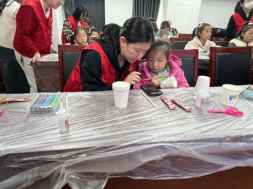 此次活动通过利用废弃纸杯和筷子制作简易鱼灯的方式,邀请孩子们一同体验鱼灯纹饰之美,了解灵动绚丽的传统鱼灯舞,感受蕴含于其中的中华传统美学魅力,坚定文化自信,并且引导孩子们能在自己的巧思和创造中变废为宝,明白节俭的含义和意义,主动参与到低碳环保的行动中去。