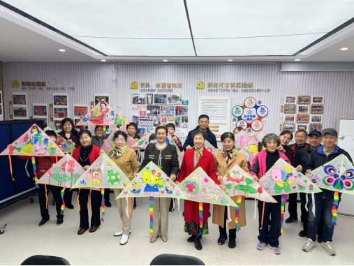 最后是春分画纸鸢活动,工作人员将风筝材料包发放给现场居民。大家拿到材料包后,拿出颜料、画笔,一笔一划描绘出美丽的风筝图案。活动最后,大家拿着自己的风筝开心的合影留念。