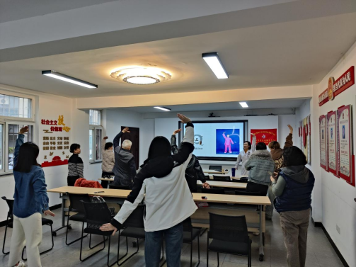 讲座中,朱医生结合春季的气候特点,详细讲解了如何科学养生、保持身心健康。她强调了春季养生的重要性,并分享了多种实用的养生方法。同时,她还针对常见的春季疾病进行了预防知识的普及,让居民们受益匪浅。讲座现场氛围热烈,居民们认真听讲,积极互动。朱医生耐心解答了居民们提出的各种问题,并给出了专业的建议和指导。在八段锦教授环节,居民们均起身跟练,感受一波中式养生潮流。讲座结束后,许多居民表示,通过这次讲座,他们不仅学到了很多实用的健康知识,还增强了自我保健的意识。