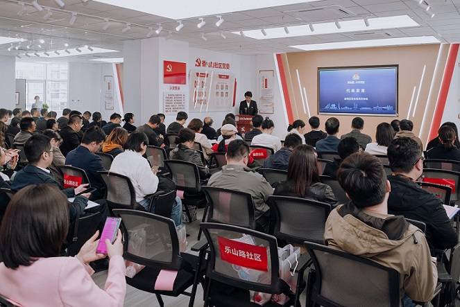 活动第一阶段,建邺区政协主席曹曙、南京艺术学院文化产业学院党总支书记管斌为香山路社区艺术中心揭牌。随后,兴隆街道党工委副书记、办事处主任郑军,南京艺术学院文化产业学院党总支副书记刘大哲为双方的党建共建基地揭牌。“兴隆街道地处南京河西新城中心区域,辖区内载体资源丰富,自然环境优美,文化氛围浓厚。”兴隆街道党工委书记於金勇在致辞中介绍,近年,街道一直致力于为居民提供更加便捷多元的服务,南京艺术学院作为卓有影响的综合性高等艺术学府,相信双方通过党建共建的形式能够优势互补、资源共享,共同营造更有美感、更具活力的社区文化氛围。