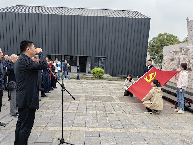 “我志愿加入中国共产党……”同志们重温入党誓词,凝聚奋进力量。在讲解员的引导下,大家依次参观了红色革命纪念馆、跃进村史馆、将帅纪念馆、溧高县兵工厂等展馆。一幅幅展板、一张张照片、一件件实物,留下了苏南抗战光辉的革命印迹,展现了军民一家亲的鱼水深情。图文并茂、内容丰富的抗战文物让党员们仿佛回到了硝烟弥漫的峥嵘岁月,大家在珍贵的图片和鲜活的故事中感知着溧高地区作为“红色堡垒”的斗争史。