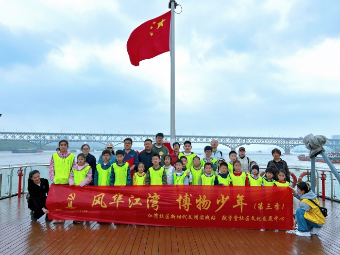 4月13日上午,江湾社区联合轼学堂社区文化中心在长江传奇游轮上开展“风华江湾 博物少年”主题活动。研学导师带领同学们登上长江传奇游轮,参观船长室,了解船舶驾驶台、机舱、甲板设备的构成与功能。少年们还聆听了船长讲解游轮驾驶的原理,解密各种航行设备。随后导师带领同学们航行游轮,当游轮航行到南京长江大桥前,也进入了今日的“桥梁课程”,少年们了解了大桥的结构、用材,在开阔的江面上乘坐游轮穿桥而过,感受大桥横跨南北的恢弘气势。回到船舱内,还进行了安全科普学习,学习水上救生知识,练习救生衣正确穿着方法,并引导少年们将安全意识和救生知识铭记于心。(双闸街道社区教育中心