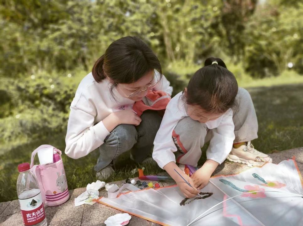 途中还设置了亲子手工活动的游戏打卡点,完成后可拍照打卡,亲子家庭玩得不亦乐乎。