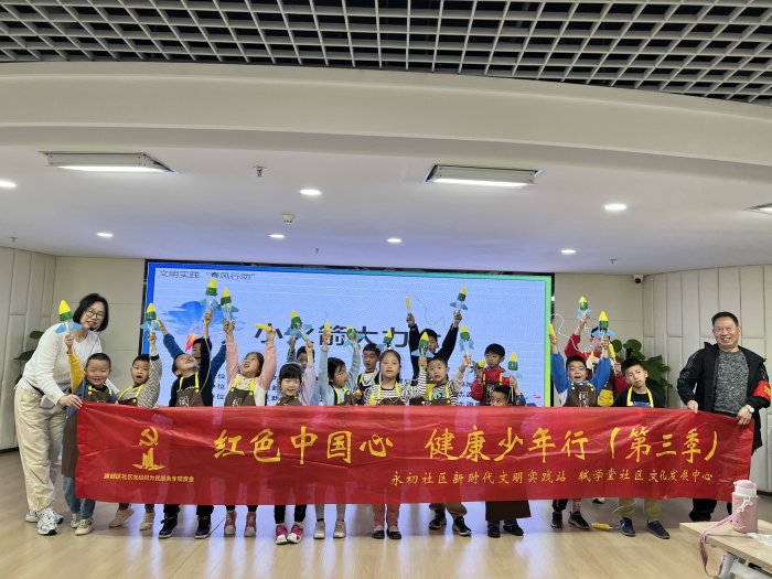 为了让辖区青少年感受科学的魅力,培养孩子们学习科学的兴趣。4月21日上午,永初社区联合轼学堂文化发展中心开展的“红色中国心 健康少年行”第三季迎来了一场新的活动。本次活动以“火箭大力士”为主题,带领孩子们亲手制作、发射水火箭,探索航天秘密。