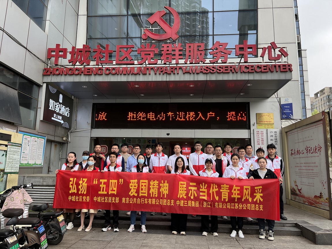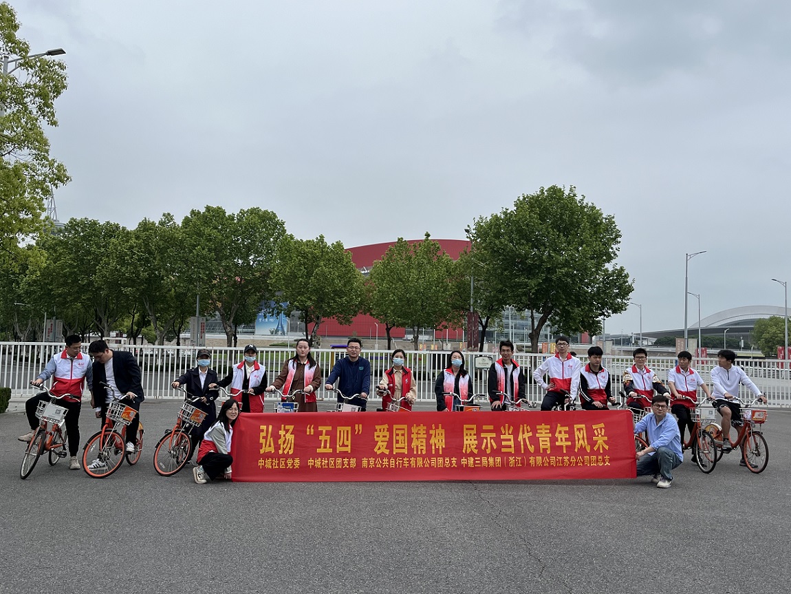 为弘扬五四精神,展现社区青年同志青春、活力、健康的精神风貌。4月30日,中城社区团支部联合南京公共自行车有限公司团总支、中建三局集团(浙江)有限公司江苏分公司团总支开展“弘扬‘五四’爱国精神 展示当代青年风采”骑行活动。