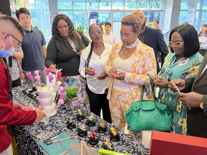 5月11日上午,纳米比亚地方政府领导人代表团在省外办欧非处副处长王敏,市外办欧非处处长刘铮,双闸街道党工委副书记,办事处主任顾晓振的陪同下参观青奥国际化社区建设,代表团先后参观了WORLD融·享空间、青奥文化交流中心等社区服务阵地,听取社区负责人详细介绍了社区关于外籍人士管理服务机制的创新举措、积极整合社区资源向居民提供多样化服务等工作。在参观过程中,代表团成员们还体验了中国传统的非遗文化,领略了中国传统文化的魅力。