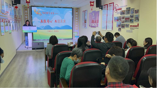 南京市成人教育学院秘书长刘茂泉,莫愁湖社区党委书记张辉为“幸福莫愁五维润心坊”揭牌。江苏省优秀社区教育志愿者、南京市三八红旗手、建邺区连心桥社工事务所负责人杨秀英,汇报分享了“幸福莫愁五维润心坊”筹建历程。张同顺校长、张卫站长、纪萍站长为“幸福莫愁五维润心坊”教育志愿者颁发聘书。教育共同体成员单位代表——南湖一小副书记肖青青,分享了“五维同心共创未来”隔代教育感悟。教育共同体志愿者代表,也是四世同堂隔代教育榜样家庭代表——汪玉鸾家长分享了“亦师亦友,做一个家庭幸福的好帮手”家庭教育的和谐做法。