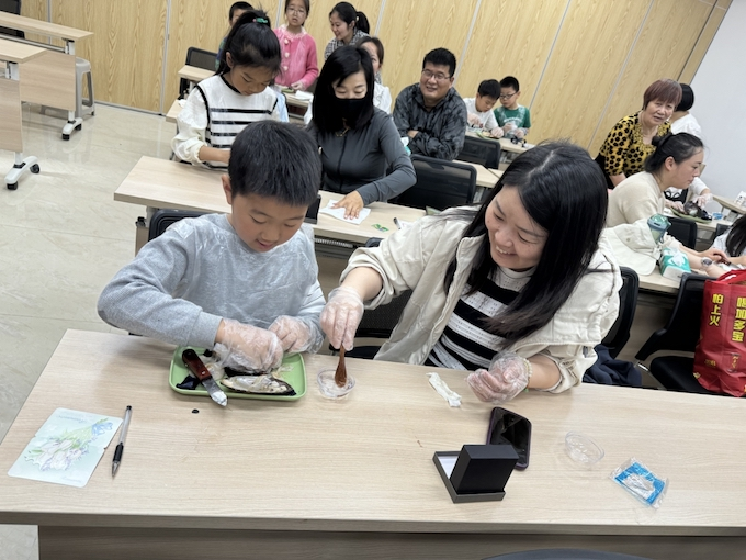 活动上,孩子们用稚嫩的语言诉说着他们眼中父母的形象以及父母对他们的教导和爱,每一个细节都充满了孩子对父母的敬爱和崇拜。这一环节不仅锻炼了孩子们的表达能力,也让父母更加了解了孩子们的想法,形成了“双向奔赴”的良好家庭教育氛围。指导老师介绍了珍珠形成的原理、开蚌的具体操作流程和注意事项,以及珍珠代表的美好寓意后,家长和孩子便开启了“开蚌制作珍珠项链”之旅。在志愿者的指导下,孩子们小心翼翼地撬开蚌壳,取出珍珠进行浸洗、抛光、串珠等工序,一件件晶莹透亮的珍珠首饰就做好了。整个过程,大家如同开“盲盒”一般,惊喜不断。活动的最后,孩子们用真挚的情感书写下自己对家庭美好的愿望,并亲手为家长送上自己制作的礼物。每一张贺卡都充满了孩子们对家长的感激和祝福,每一份礼物都凝结了孩子们的心意。