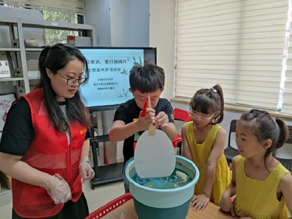 为了弘扬中华优秀传统美德,传承优良家风家训,带领辖区少年儿童体悟古圣先贤良好的家庭教育之风,2024年5月25日上午,国泰民安社区联合扬子文化交流服务中心在社区群众文化中心开展了一场“扇上写家训,夏日扬清风”古圣先贤家风学习,让社区青少年在问答中学习优良家风家训,体会传统美德的魅力。