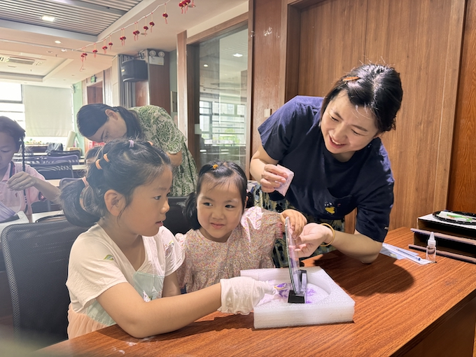 江心洲街道洲岛家园社区开展“创意流沙画 翻转皆美景”亲子手工活动