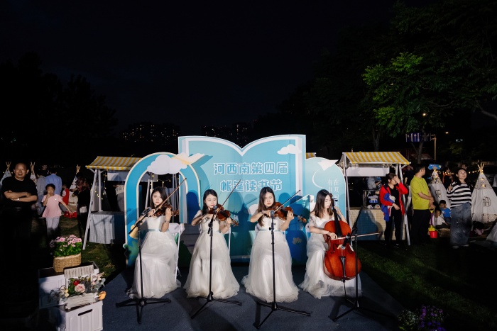 5月31日晚,“有书自来熟,在双闸遇见彼此”河西南第四届帐篷读书节暨“TALKLOOK”升荣文化慢聊圆满启动。建邺区委常委、宣传部部长杨晨、宣传部副部长、区文明办主任狄芸、街道主要领导、建邺区教育局、团区委、文旅局、水务局等单位领导、南京保利大剧院管理有限公司党支部书记巩升林和辖区30组居民家庭参加。