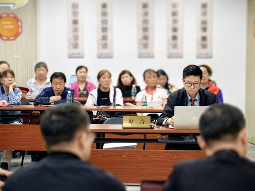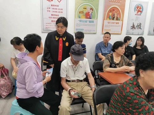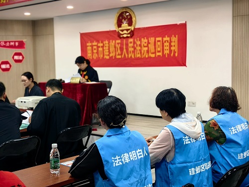 5月31日下午,建邺区“融合法庭”巡回审判走进北圩路社区,现场邀请50余名居民和社区网格员旁听。