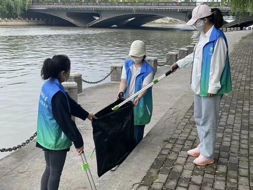 莫愁湖社区组织青年志愿者在秦淮河风光带开展道路及绿化带等区域的垃圾袋、纸屑、烟头等进行清理打扫志愿活动,维护秦淮河畔环境卫生。