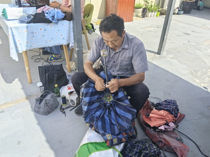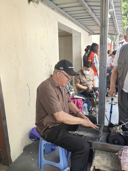 6月4日上午,怡康社区联合一家亲社会组织开展庆端午、便民活动,活动现场社区邀请了修伞、缝纫、磨刀、修鞋等维修人员现场为居民免费维修,活动一开始缝纫摊前就聚满了人,大妈、大姐们拿着家里坏掉的衣服、窗帘来找师傅维修,磨刀摊前也很火爆,不一会就排起了长队。磨完刀后,道具锃锃发亮,居民赞不绝口。