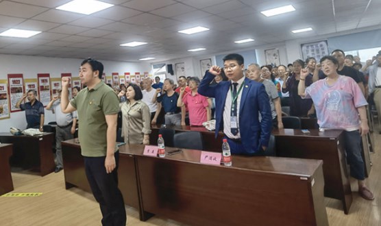 随着嘹亮的国歌背景音乐缓缓响起,全体党员一起面向党旗,在虹苑社区党委书记李晶的领誓下,重温入党誓词,激励党员们接续奋斗逐梦前行!