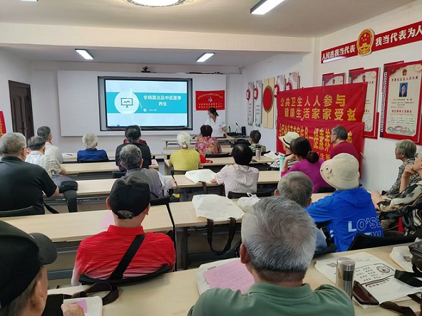 宣讲活动由社区医院资深医师主讲,她首先介绍了夏季养生的重要性,并分享了一系列实用的夏季保健小贴士。从合理饮食、适量运动到充足睡眠,每一点建议都贴近生活,易于实践。医师特别强调了夏季补水的重要性,提醒大家注意避免中暑,保持良好的生活习惯,以应对高温天气带来的挑战。