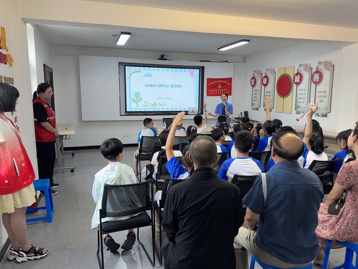 为深入贯彻《未成年人保护法》,提升社区青少年们对法律知识的认知与自我保护能力,积善社区关工委与建邺区检察院关工委特于2024年7月16日下午联合举办了以“守护成长,法伴青春”为主题的未成年人保护法普法宣传活动。此次活动旨在通过一系列丰富多彩的宣传形式,将法律知识送到青少年及其家长身边,共同营造一个安全、健康的成长环境。