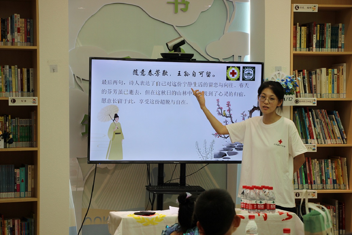 为传承和弘扬中华优秀传统文化,提高青少年的艺术修养和文化素养,7月16日下午,莲花嘉园社区关工委联合南京师范大学外国语学院实践团队志愿者组织开展“邂逅诗词,艺彩情韵”青少年古诗绘画活动。