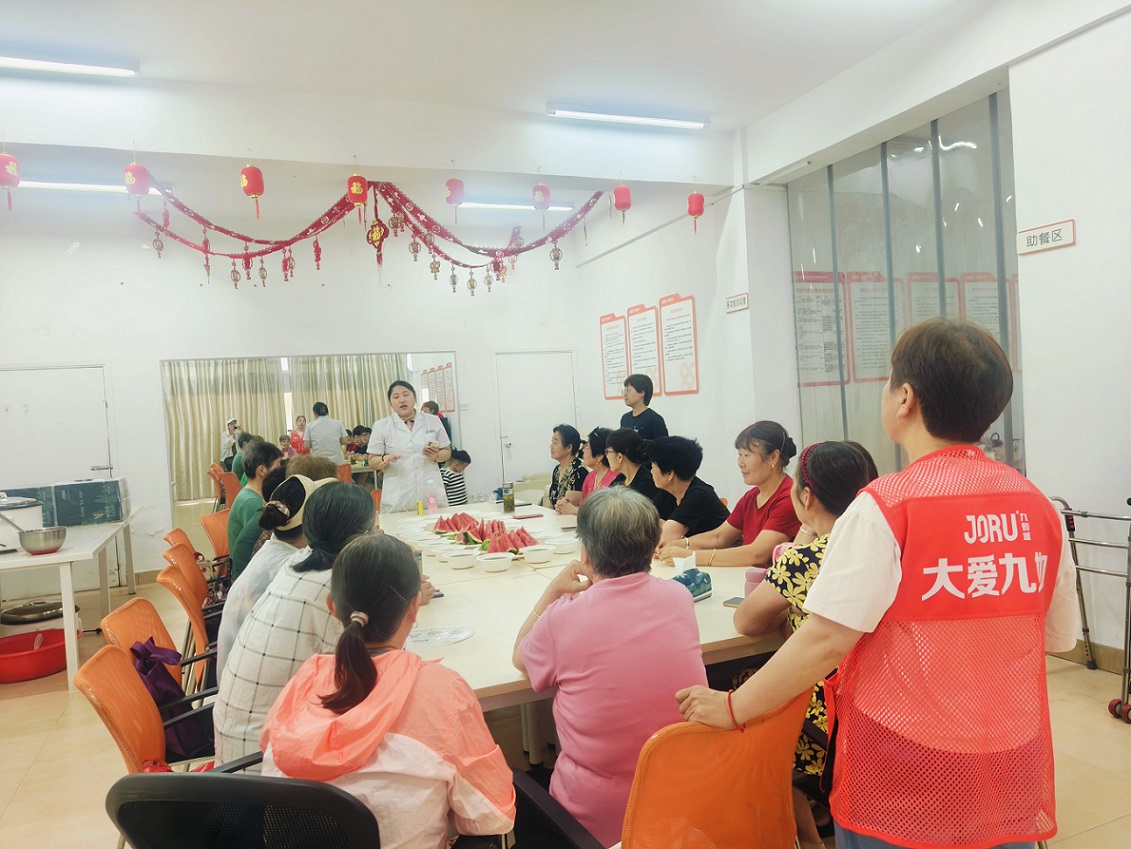 活动现场,来自九如城养老机构的护士以通俗易懂的语言,深入浅出地为老人们普及了湿热环境下个人卫生注意要点。“防暑热、莫贪凉、重防晒、少油腻、补水分、适运动、常备药”,护士还从生活实际出发,以简单易记的小口诀向大家讲解了夏季防高温酷暑妙招及心脑血管疾病应注意的事项,及一系列实用的防暑降温小技巧,帮助老年人构建起全方位的健康“防护网”。