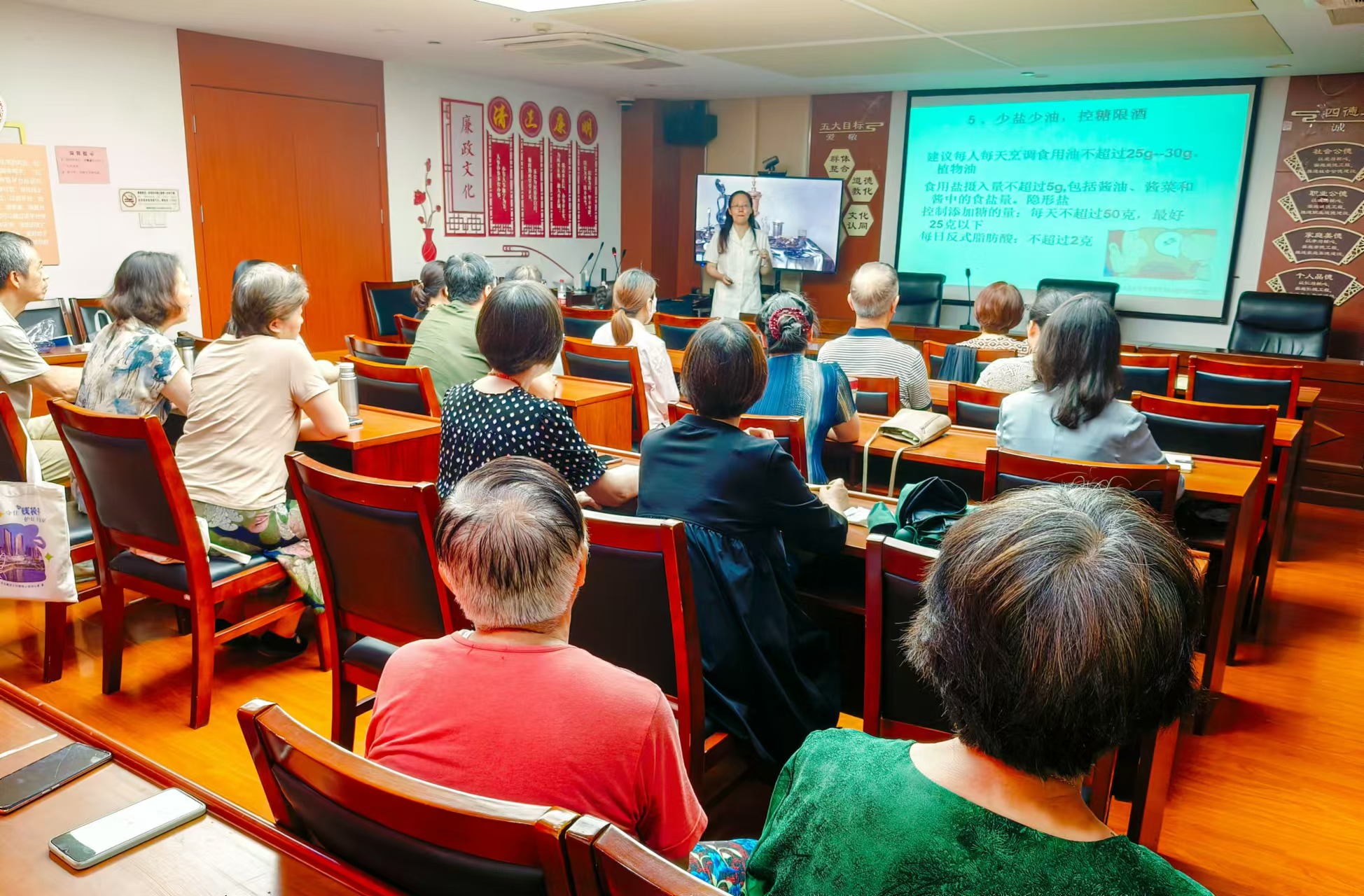 洲岛家园社区针对老年人群体,特别组织了夏日养生讲座,详细讲解了老年人的夏季养生知识,包括饮食、运动、作息等方面的注意事项。