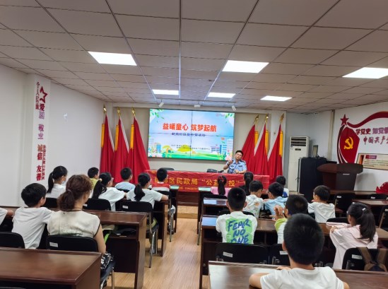 7月15日,为进一步提高青少年对电信网络诈骗的自我防范意识和甄别能力,夏令营开营仪式结束后,来自辖区派出所的孙警官,通过普法讲座和反诈知识竞赛给孩子们开展了一堂特别的法治教育课。