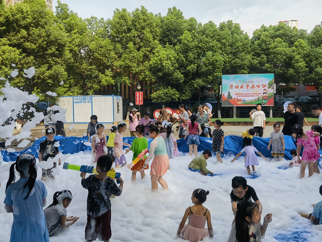 为丰富辖区新市民、双职工家庭子女的假期生活,创新社区服务形式,促进亲子关系、家庭和谐的同时,倡导积极的生活方式,在2024年度建邺区公益创投《穗光少年,一起成长》项目支持下,8月10日,金穗花园社区联合智高科教精心筹备的“点亮星夜 夏日亲子嘉年华”活动在社区文化广场如期举行。近30组亲子家庭在梦幻泡泡趴、亲子队列竞技、小小铁人三项赛中体验清凉,感受亲情,竞技拼搏。