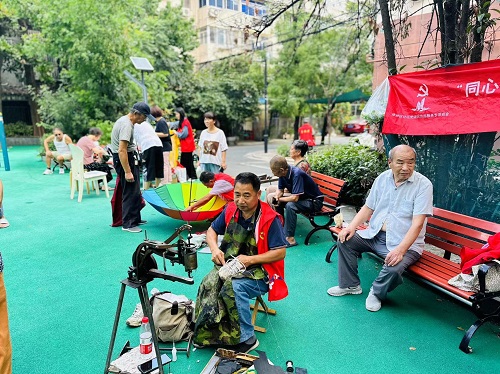 为了方便社区居民,社区当天提供了磨刀、修鞋、修伞、理发、量血压等便民服务。工作人员现场了解“同心红格”小程序的使用情况,进一步对该小程序进行了宣传与推广。
