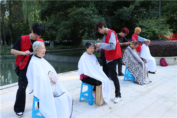 “老行当”便民惠民服务区更是热闹非凡。为了让居民们体验到传统手工艺的魅力,同时享受便捷的生活服务,社区邀请了经验丰富的手工艺人,现场提供理发、磨刀、修鞋、修伞、缝纫等便民服务。居民们可以趁此机会,将家中需要修缮的物品拿来处理,既方便又省心。