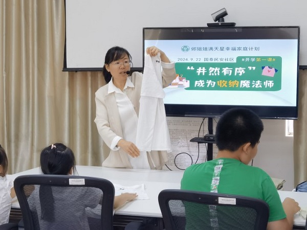 自立是一个人成长的第一步的,对于青少年来说,自立应该从身边的家务劳动做起。2024年9月22日国泰民安社区开展“井然有序,成为收纳魔法师”活动。学习科学的收纳整理方法。