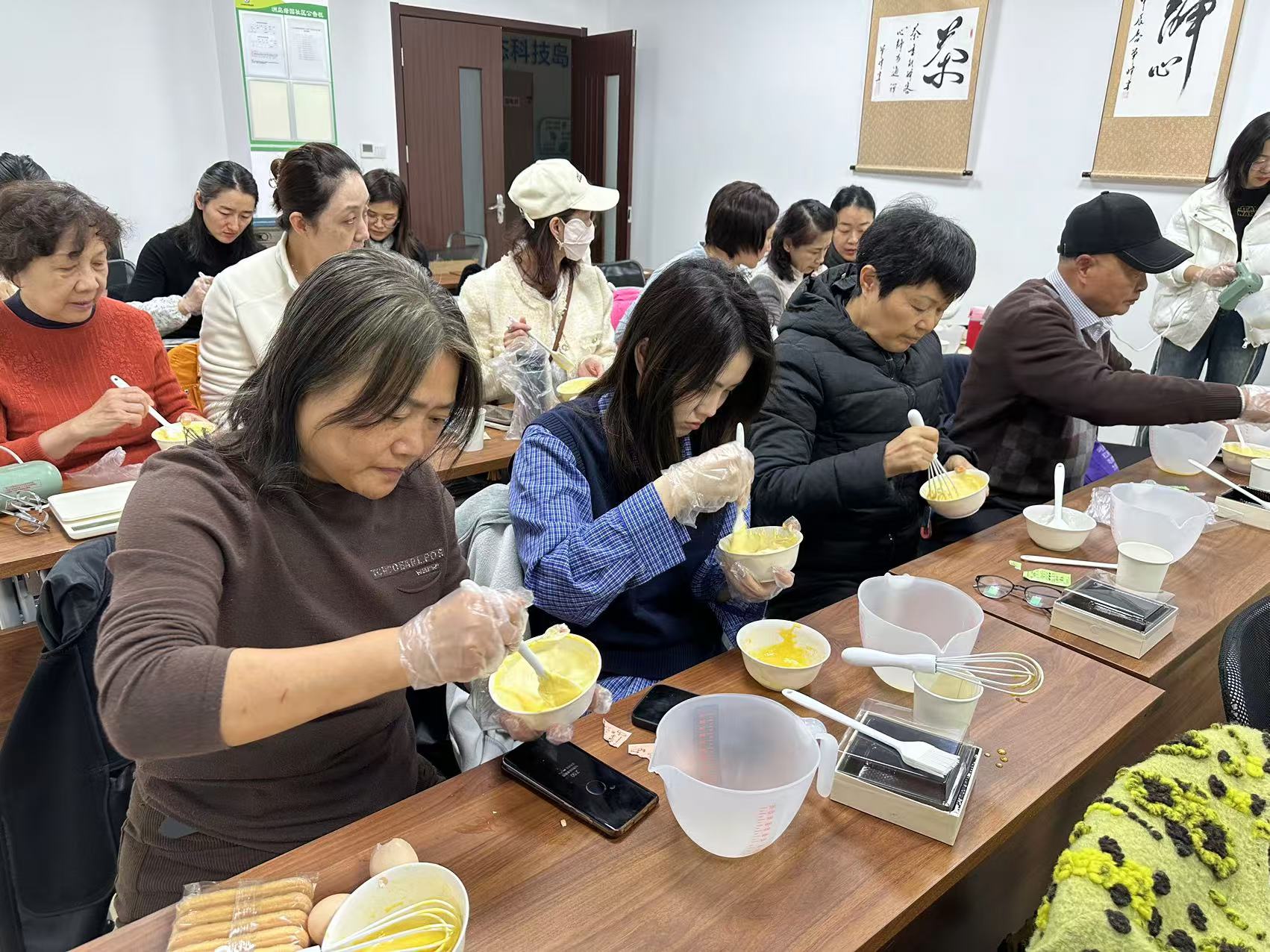 活动当天,活动室里弥漫着甜蜜的香气和温馨的气息。专业的烘焙老师准备了各类食材和工具,为大家讲解甜品制作的步骤和技巧。居民们围坐在一起,聚精会神地聆听老师的讲解。从原材料的选择到制作的每一个步骤,老师都进行了详细的示范和说明。居民们积极提问,亲手实践,在老师的耐心指导下,大家纷纷动手,看着亲手制作的甜品,大家脸上洋溢着满满的成就感和幸福感。