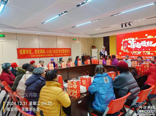 江东门社区于2024年12月31日成功举办了主题为“欢乐迎新年,巧手创幸福”的元旦庆祝活动。本次活动由社区新时代文明实践站和建邺区乐邻汇社会工作服务中心联合组织,吸引了众多居民踊跃参与,为社区营造了温暖欢乐的节日氛围。