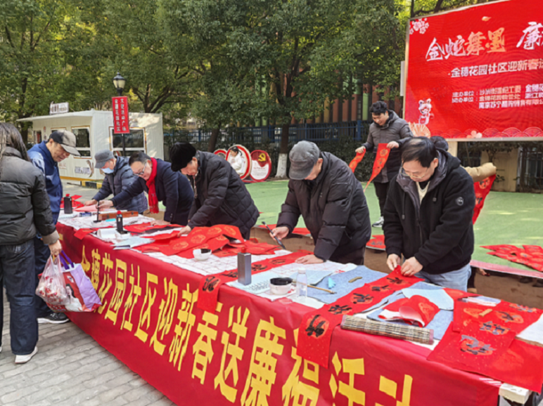 在2025年新春佳节到来之际,为了营造新春氛围,弘扬廉政文化,1月19日上午,沙洲街道金穗花园社区开展“金蛇舞墨 廉福迎春”活动。
