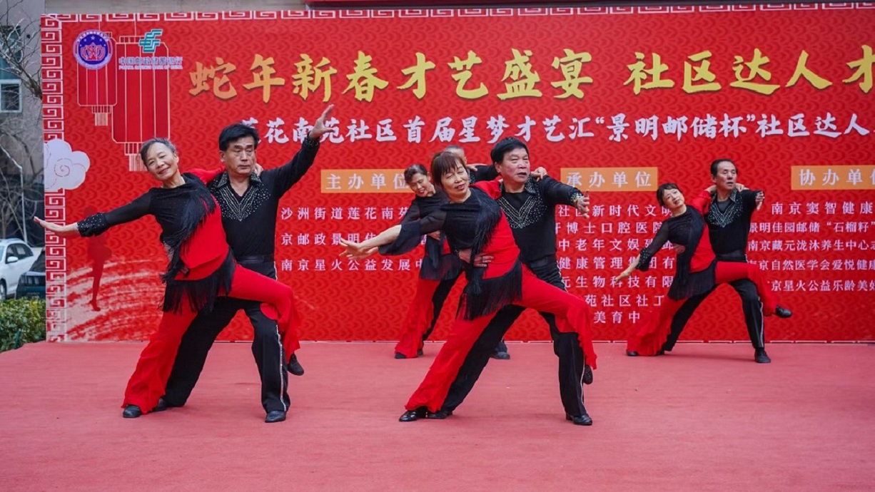 2月22日下午,首届星梦才艺汇“景明邮储杯”社区达人大赛在南京市建邺区沙洲街道莲花南苑小区荣耀举行,为热爱表演、热爱艺术的居民提供展示的舞台和学习交流的平台,让社区居民群众在“家门口”享受多姿多彩的文化盛宴。