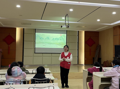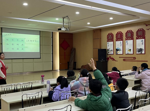 2月23 日上午,一场主题为“春风十里,共享诗趣”的春日诗词会活动在明园社区举办。本次活动由明园社区关工委携手惠仁社会组织以及南京邮电大学烽火青年志愿者协会(社工协会)共同开展,旨在通过欣赏和学习有关春天的诗词,激发青少年对诗词兴趣,带领他们感受春日的美好。活动开始前,项目负责人首先为在场的青少年播放了共青团“伙伴计划”的思想引领公开课程第40讲——新征程 再出发。