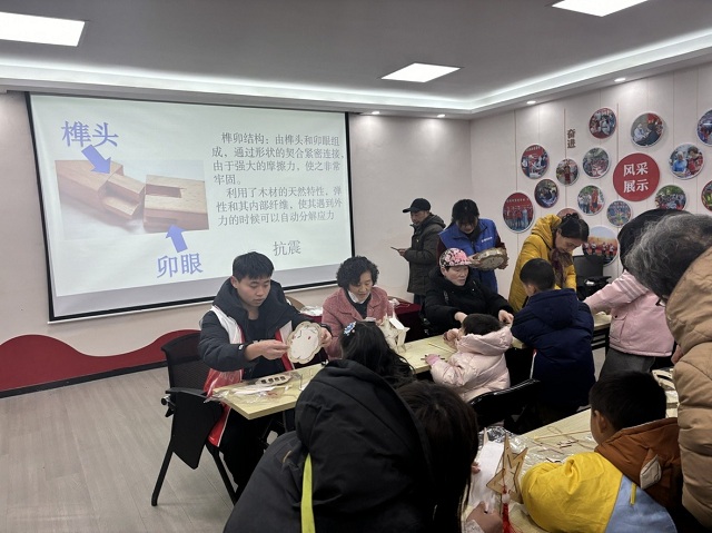 榫卯是中国传统建筑、家具和其他木制器具的主要结构方式,它在方寸之间展现了力与美的结合,是中国古代匠人的智慧结晶。2月9日, 莫愁湖街道蓓蕾社区关工委组织开展“小小建筑师”非遗类科普课程,探寻中国古代建筑的起源与发展。