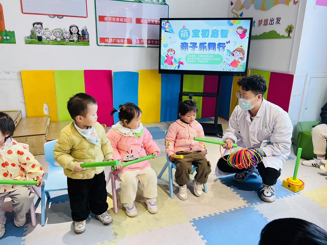 为提高社区家庭科学育儿的质量,帮助学龄前家长树立正确育儿理念,助力辖区内 0 - 3 岁宝宝更好地发展感官与运动能力,中瑞社区联合莲花社区卫生院于2月28日在中瑞社区活动室开展“萌宝乐启智”亲子活动。