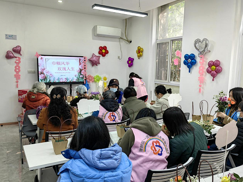 莫愁湖社区开展“巾帼风华 玫瑰人生”插花会活动