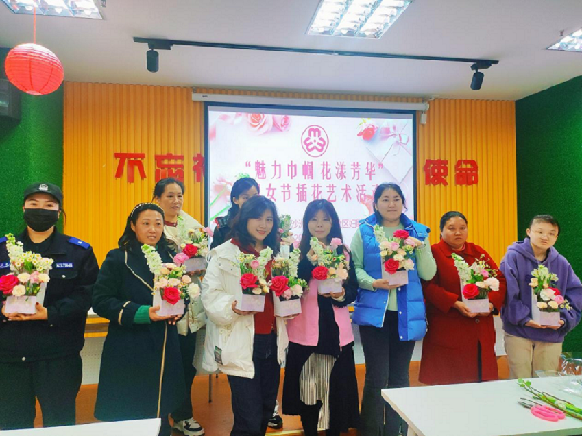 3月7日,时值“三八”国际妇女节115周年,沙洲街道中瑞社区开展“魅力巾帼·花漾芳华”妇女节主题插花艺术活动。社区妇联联动小区物业、辖区警务、新就业形态群体等多行业巾帼一线奋斗者,向她们致以节日问候和美好祝福。节日之际,旨在通过艺术沙龙展示“她”力量,呼吁居民欣赏“她”力量、感恩“她”力量。