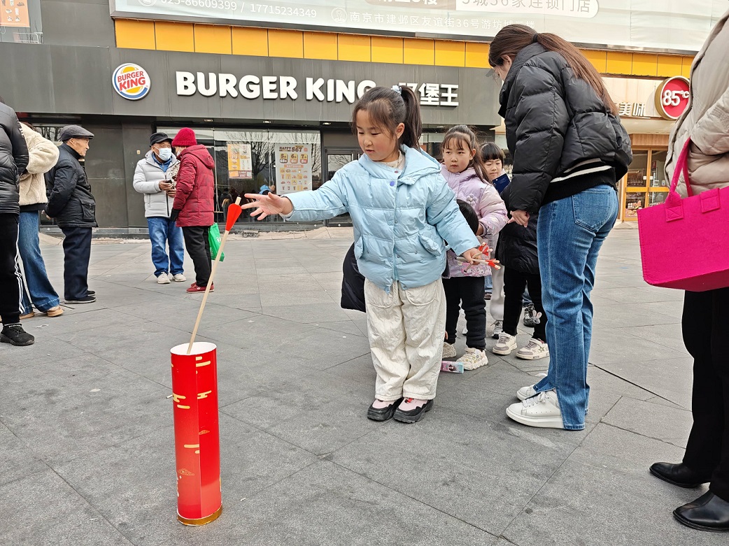 活动以“寓教于乐”为核心,设置了套圈、投壶、扔沙包等经典项目。套圈环节中,孩子们依次排队参与,每一次精准套中礼品的欢呼声都传递着自信与成就感。投壶游戏则考验专注力与耐心,孩子们屏息凝神瞄准壶口的瞬间,悄然培养了沉着冷静的品格。最后的扔沙包项目将活动推向高潮,孩子们奋力将沙包投向远处的布袋,既锻炼了手眼协调能力,也深化了目标意识。全程由社区“五老”护航,他们不仅维护秩序,更主动协助遇到困难的孩子完成任务,用行动诠释“老有所为”的奉献精神。