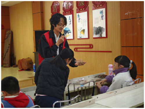 上午,志愿者通过生动的思想引领公开课,向孩子们讲解了香囊的历史渊源、文化内涵及中药香料的药用价值,并展示传统香囊的经典样式与制作工具。孩子们在志愿者的引导下,学习如何辨识艾草、丁香、薄荷等中药材,了解香囊“避秽驱邪”的文化寓意,深刻体会到非遗技艺中蕴含的智慧与匠心。