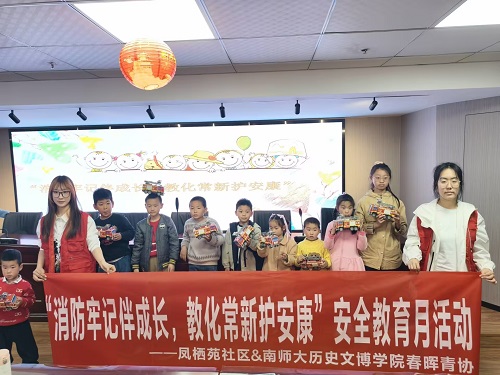 2025年3月22日,南京师范大学历史文博学院“春晖”青年志愿者协会的志愿者们走进凤栖苑社区,开展了一场别开生面的“消防牢记伴成长,教化常新护安唐”主题志愿活动,旨在向社区居民普及消防安全知识,提升大家的安全意识和自防自救能力。