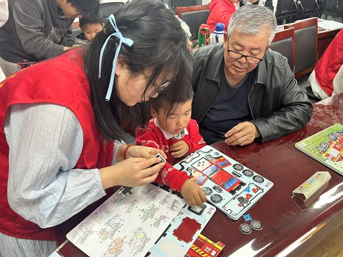 随后,进入了充满趣味的消防车拼图制作环节。志愿者们为小朋友们分发了拼图材料,耐心指导他们完成拼图。在拼图过程中,志愿者们不仅帮助小朋友们解决遇到的困难,还进一步讲解消防车的构造、功能以及在火灾救援中的重要作用,让孩子们更加直观地了解消防知识。小朋友们全神贯注,充分发挥自己的动手能力和想象力,一幅幅精美的消防车拼图在他们手中逐渐成型。