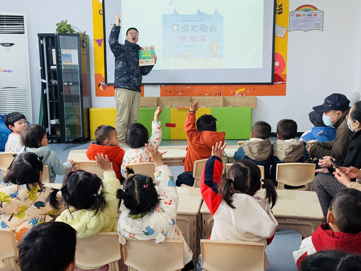 3月20日,莲花嘉园社区关工委迎来了一场生动有趣的少儿阅读活动。此次阅读活动以 “儿童健康科普” 为主题,精选了来自德国的经典科学图画书《牙齿大街的新鲜事》——讲述了两个精灵古怪的小家伙千方百计想要破坏小朋友牙齿的经过。通过轻松幽默的环节,使孩子们深刻地明白保护牙齿的重要性。