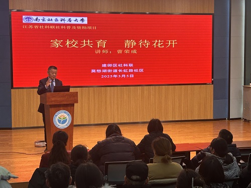为加强家校沟通,促进学生全面发展,3月5日长虹路社区联合南京市南湖第一小学共同举办了“家校共育 静待花开”主题讲座。