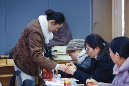 接着,在学习制作方法阶段,指导老师细致讲解了掐丝珐琅画的制作步骤与技巧,从如何巧妙地将铜线按照设计图案进行弯折、粘贴,到怎样精准地调配彩釉颜色、均匀填涂,老师都一一耐心示范,居民们全神贯注地聆听、观看,不时提出自己的疑问,现场学习氛围浓厚。