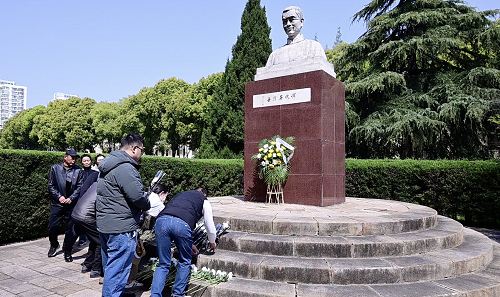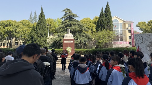 苍松翠柏掩映下的恽代英烈士殉难处庄严肃穆,恽代英烈士雕像巍然耸立,社区党员、居民代表及少先队员面向烈士雕像集体肃立。全场奏唱中华人民共和国国歌后,全体人员向长眠于此的革命烈士默哀一分钟,表达对烈士的缅怀之情。