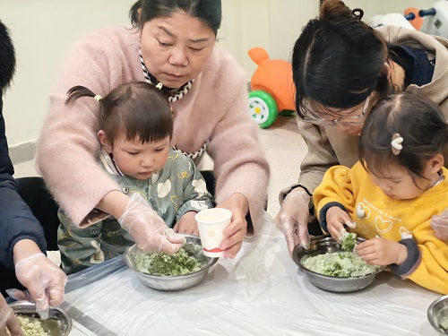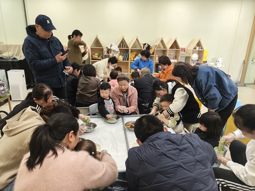 制作过程中,家长和孩子们相互协作,欢声笑语不断。孩子们兴奋地展示着自己亲手制作的青团,家长们则在一旁耐心指导,不时传来阵阵鼓励与赞美。整个活动现场洋溢着温馨和谐的氛围,艾草的清香与糯米的甜香交织在一起,构成了一幅春日里最美的画面。